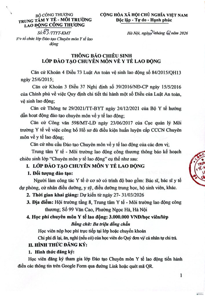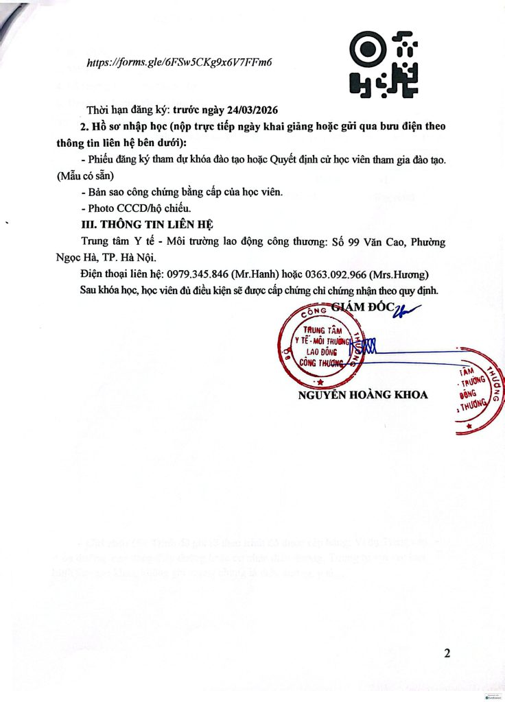 - THÔNG BÁO LỚP ĐÀO TẠO HUẤN LUYỆN CHUYÊN MÔN VỀ Y TẾ LAO ĐỘNG NĂM 2024